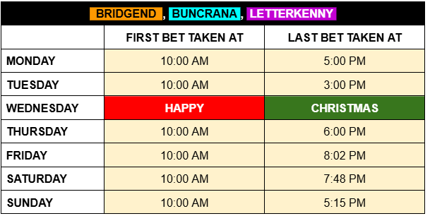 OPEN HOURS – Mon 23rd Dec – Sun 29th Dec 2024