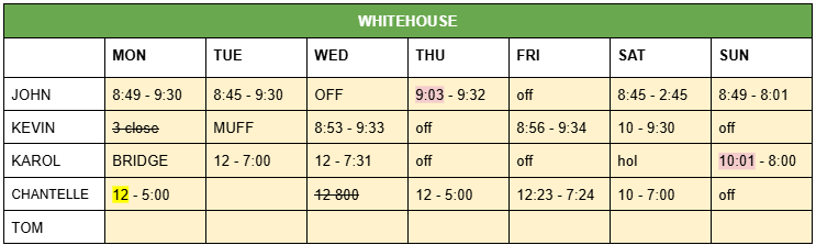 Staff Sheets