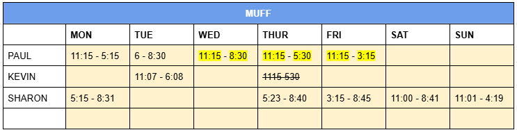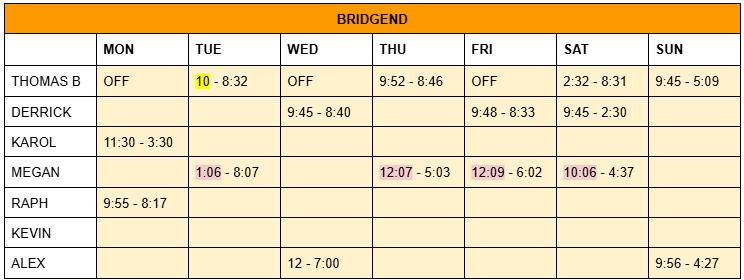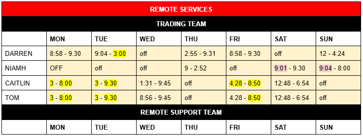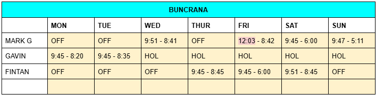 ROTA – Mon 11th Nov – Sun 17th Nov 2024