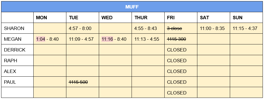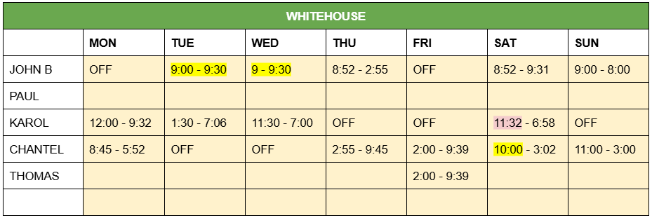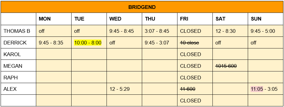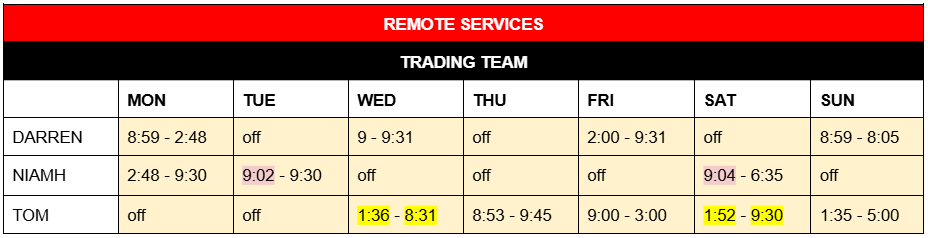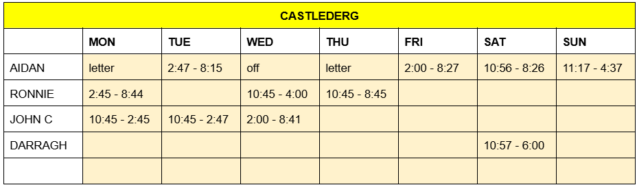 ROTA – Mon 20th Jan – Sun 26th Jan 2025