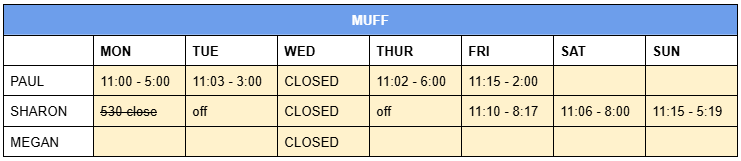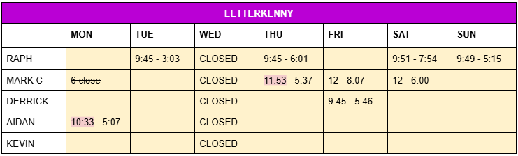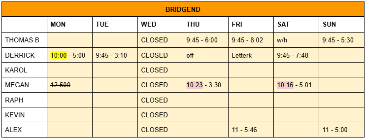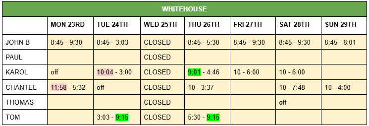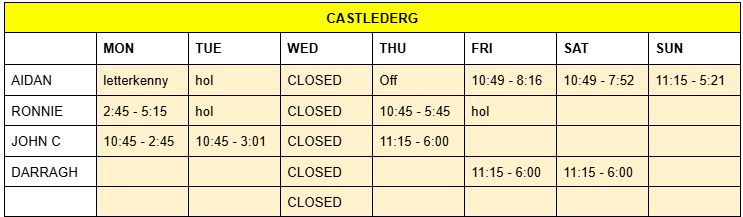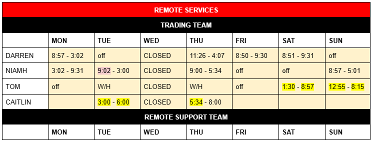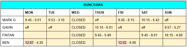 ROTA – Mon 23rd Dec – Sun 29th Dec 2024