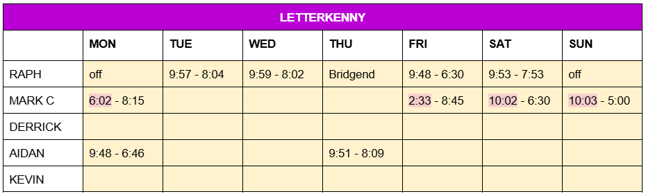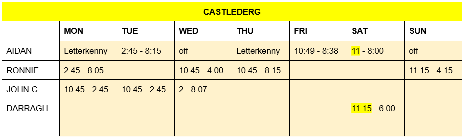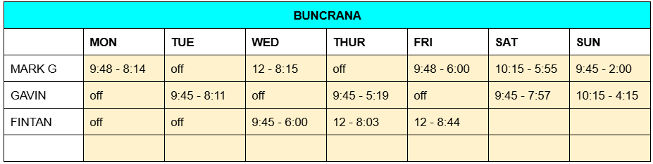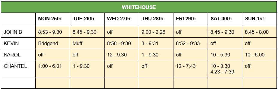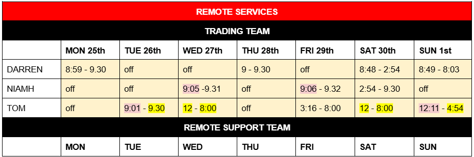 ROTA – Mon 25th Nov – Sun 1st Dec 2024