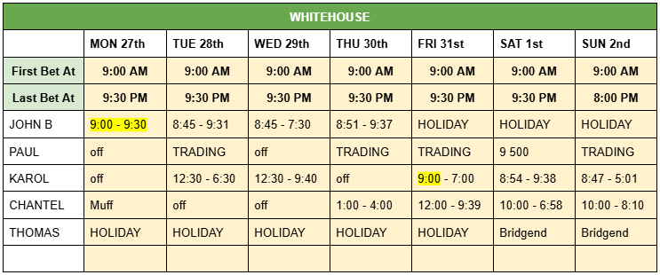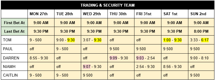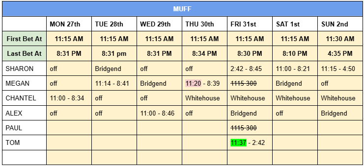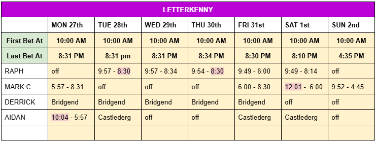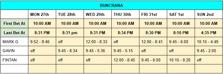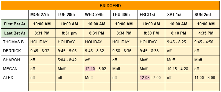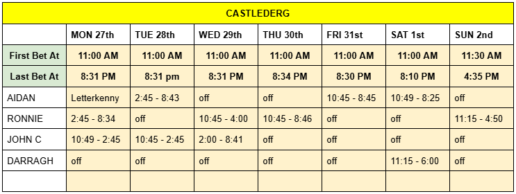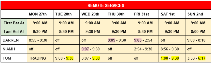 ROTA – Mon 27th Jan – Sun 2nd Feb 2025