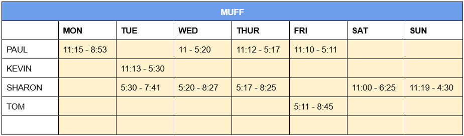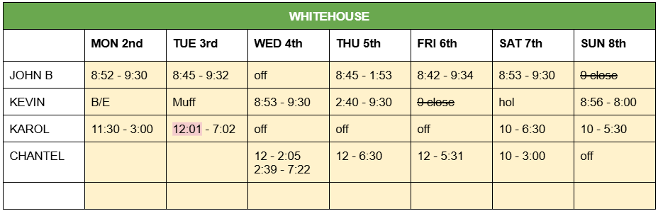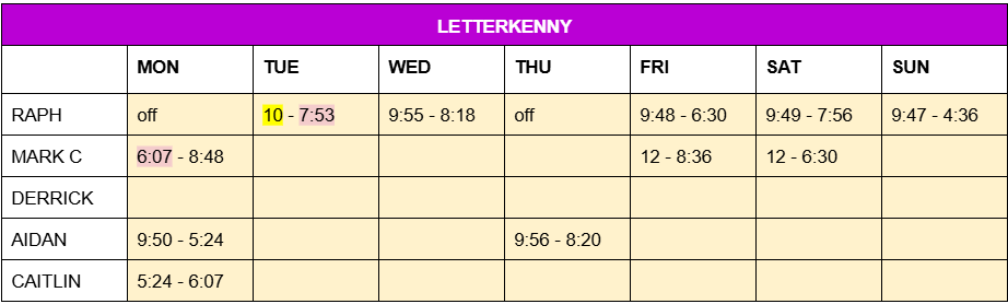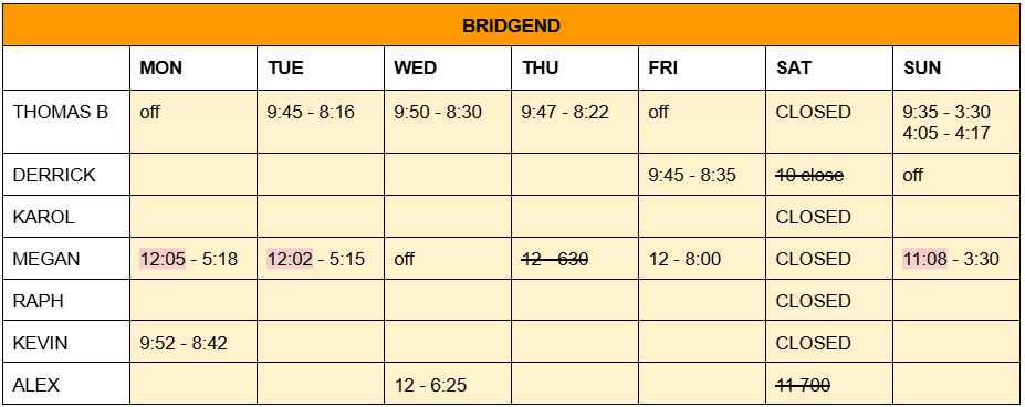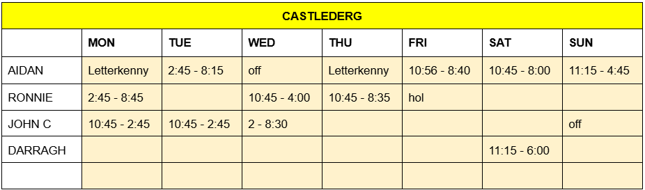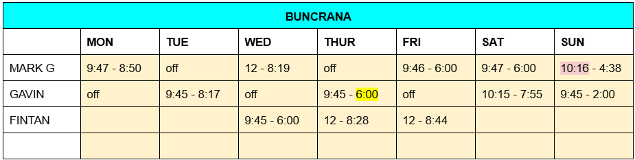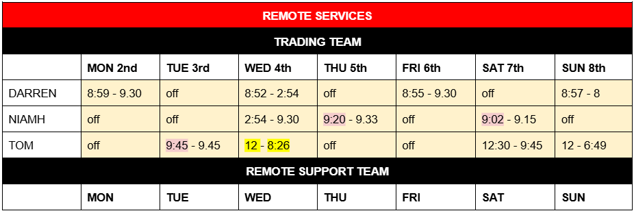 ROTA – Mon 2nd Dec – Sun 8th Dec 2024