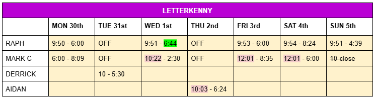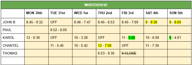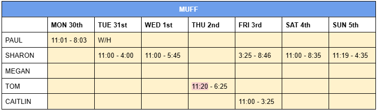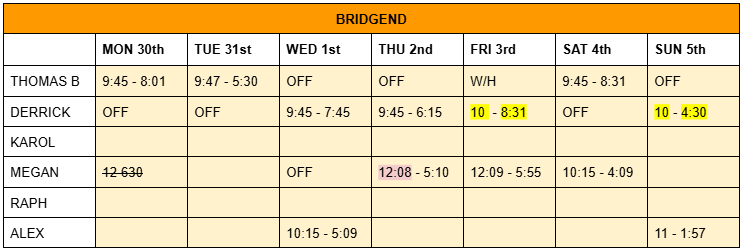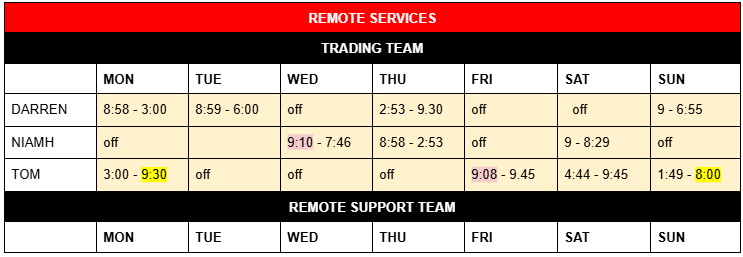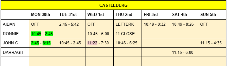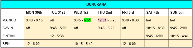 ROTA – Mon 30th Dec 2024 – Sun 5th Jan 2025