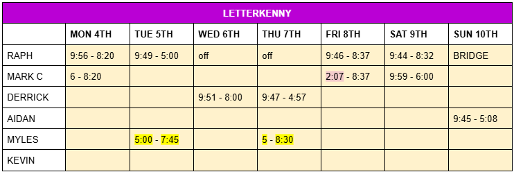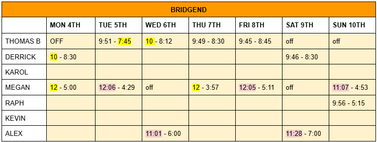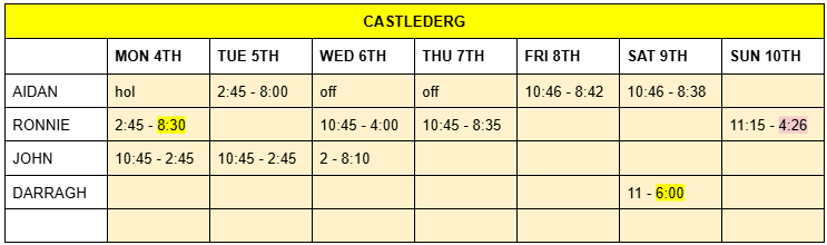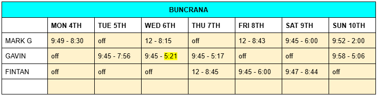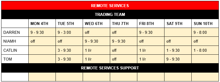 ROTA – Mon 4th Nov – Sun 10th Nov 2024