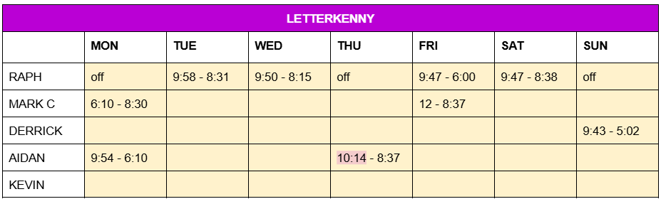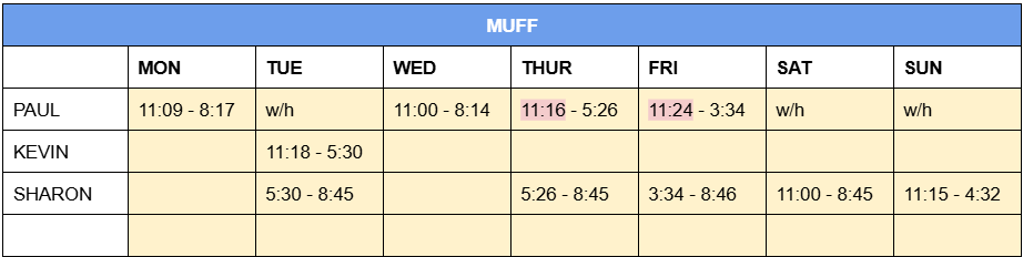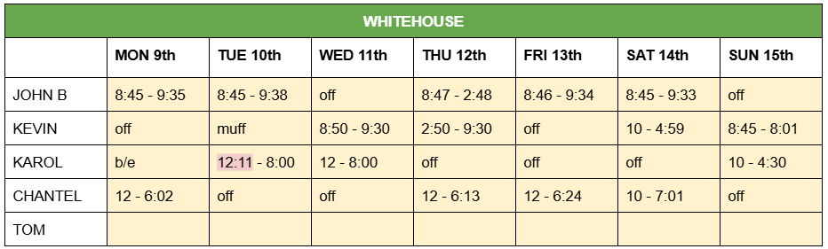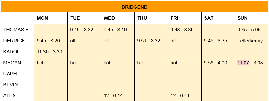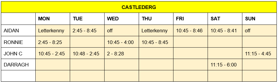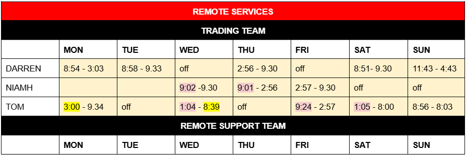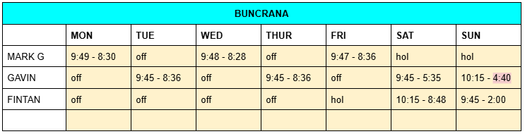 ROTA – Mon 9th Dec – Sun 15th Dec 2024